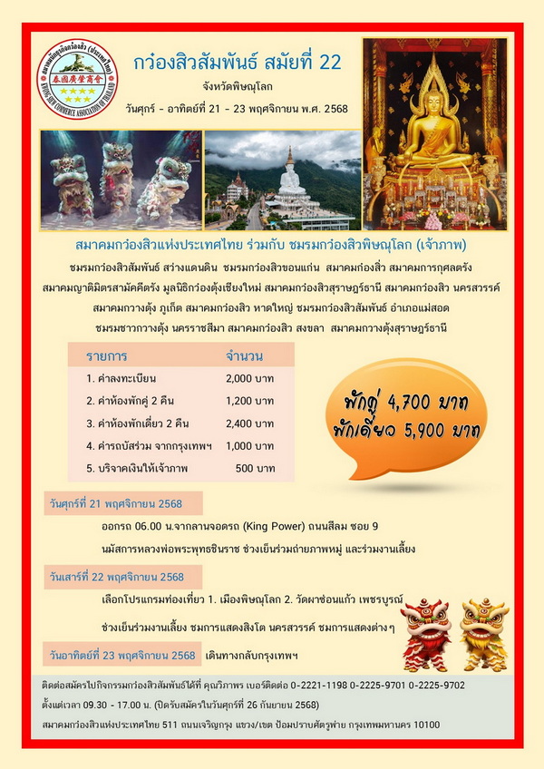 | มื่อวันที่ 27 มิถุนายน 2567 เวลา 11.00 น. สมาคมกว๋องสิวแห่งประเทศไทย ได้จัดพิธีรับมอบตำแหน่งคณะกรรมการบริหารสมัยที่ 45 ณ ห้องจัดเลี้ยง ชั้น 12 อาคารไทยซีซีทาวเวอร์ |