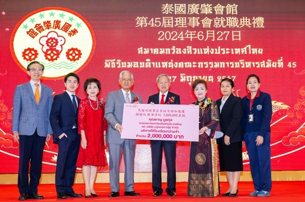 เมื่อคุณชาญกล่าวขอบพระคุณเสร็จสิ้นแล้ว คุณชาญ บูลกุล นายกสมาคมกว๋องสิวแห่งประเทศไทย และคณะผู้บริหารของบริษัทบรุ๊คเกอร์กรุ๊ป ได้มอบเงินบริจาคจำนวน 2,000,000 บาทแด่โรงเรียนกว่างเจ้า และคณะสิงโตกว๋องสิว โดย ดร.จารุนันท์ จารุเธียร อุปนายกสมาคม และครูของโรงเรียนกว่างเจ้าเป็นตัวแทนรับมอบเงินบริจาคดังกล่าว